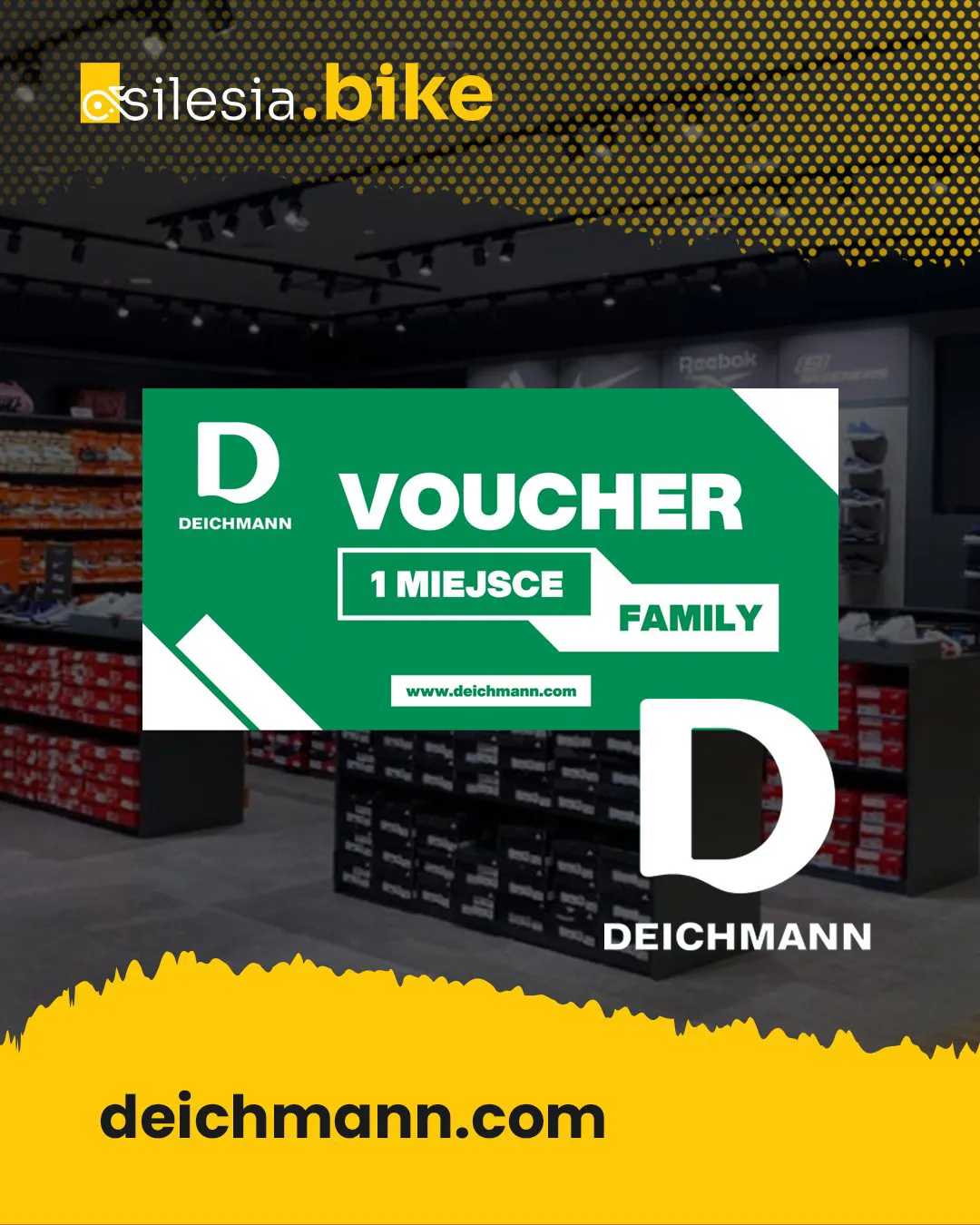 Specjalne nagrody dla zawodników na dystansie FAMILY Naszym partnerem podczas Silesia Bike – BIELSKO BIAŁA jest także marka Deichmann, która ufundowała specjalne nagrody dla zawodników na dystansie FAMILY. Zarejestruj się teraz Dowiedz się więcej